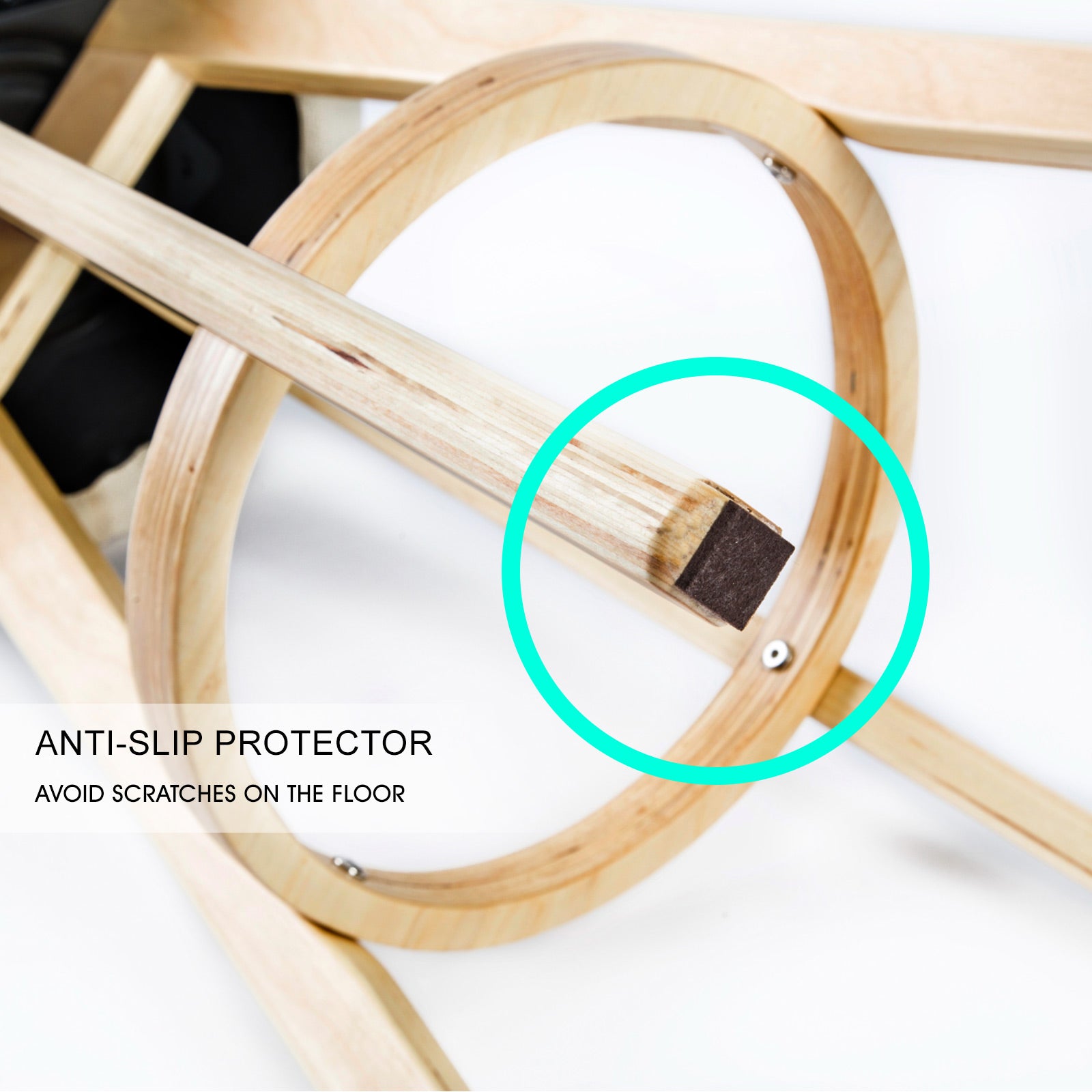 - Anti-slip plastic protector attached to stool legs to minimise scratches on wooden and tile floor