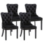 4x Velvet Dining Chairs Upholstered Tufted Kithcen Chair with Solid Wood Legs Stud Trim and Ring-Black
