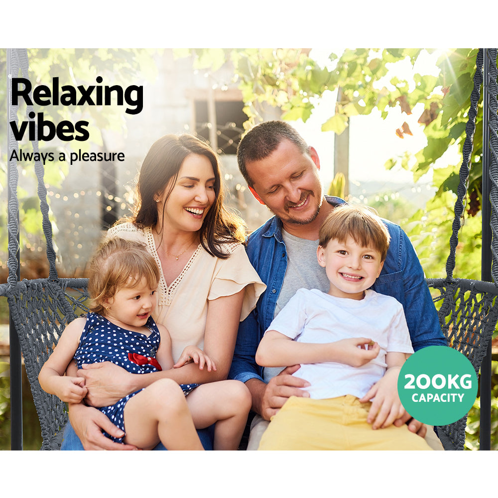 Gardeon Hammock Chair with Stand Macrame Outdoor Garden 2 Seater Grey