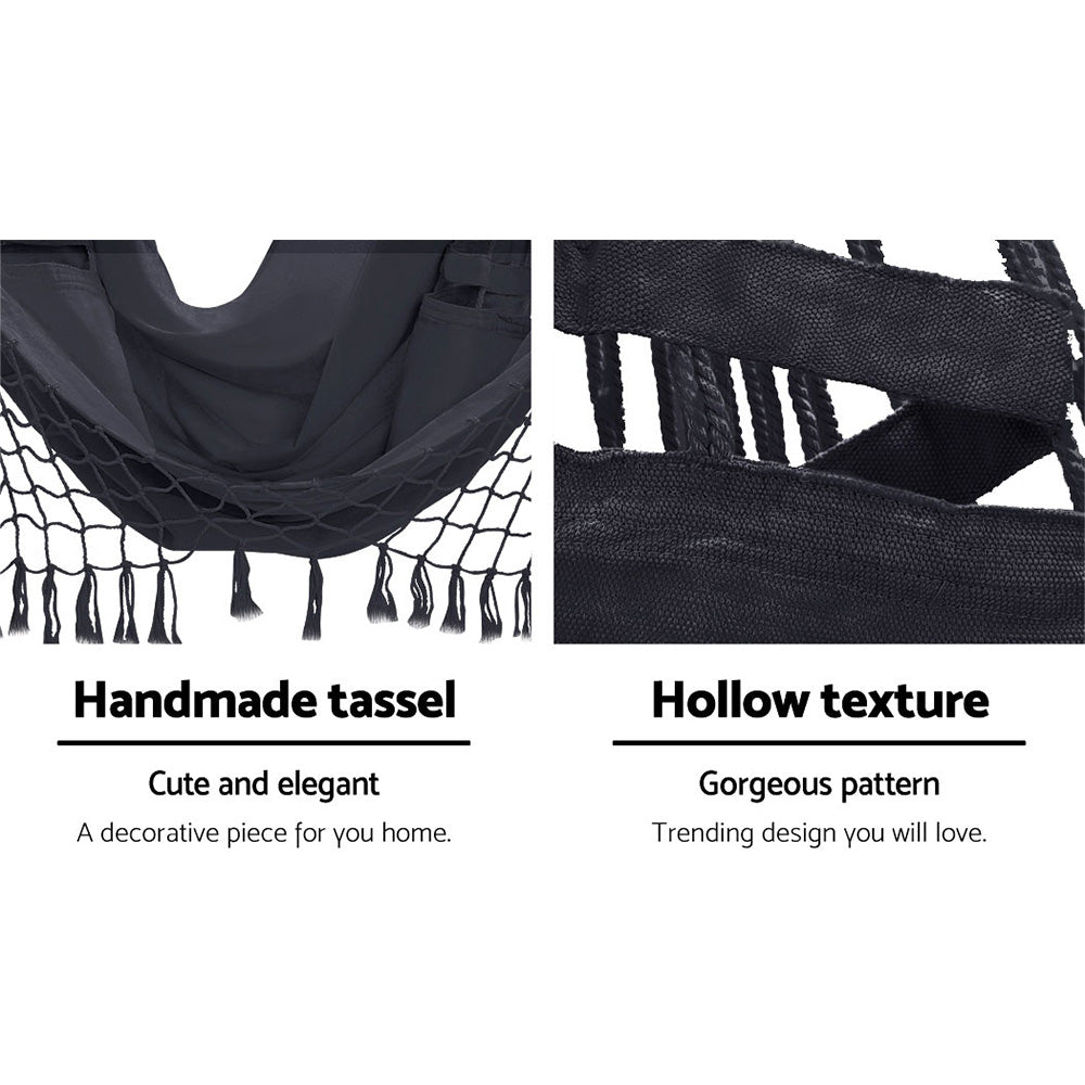 Gardeon Outdoor Hammock Chair with Stand Tassel Hanging Rope Hammocks Grey