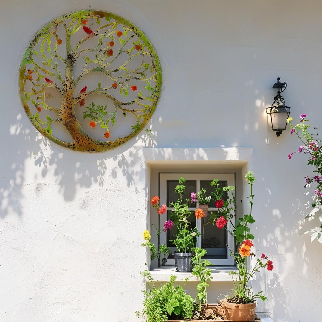 Round Laser Cut Tree Of Life w Red Birds 80cm